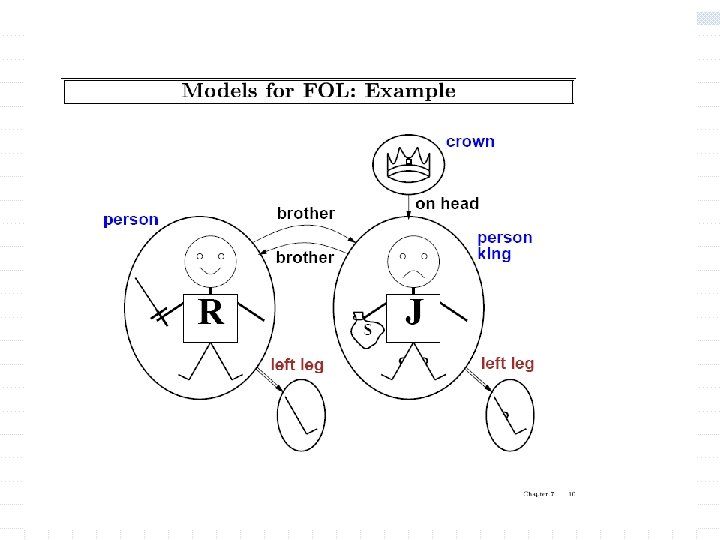 Example of models w w w The formulas: On(A, F 1) Clear(B) and Clear(C) On(A, F 1) Clear(B) or Clear(A) Clear(B) Clear(C) Possible interpretations which are models: On = {, ,