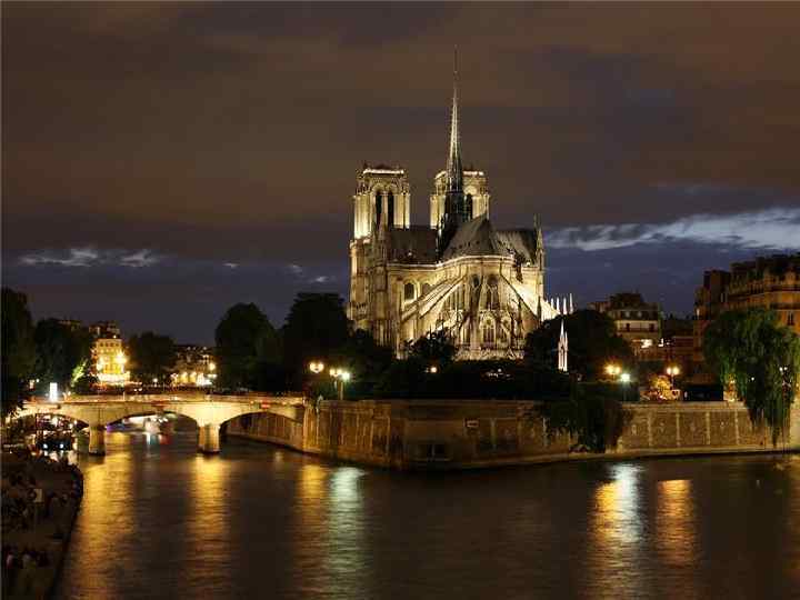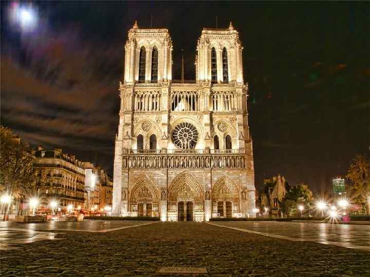Нотр-Дам • Кафедральный собор Нотр - Дам был сооружен на острове Сите на месте первой христианской церкви Парижа базилики Святого Стефана, построенной, в свою очередь, на месте галло - римского храма Юпитера, по инициативе парижского епископа Мориса де Сюлли.