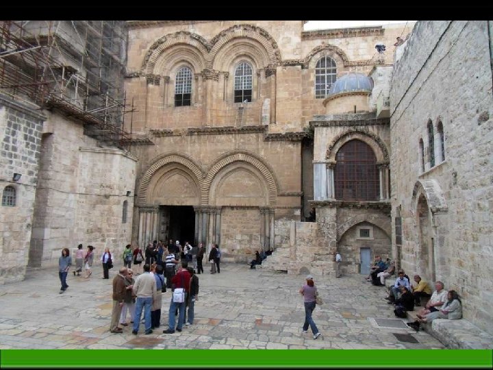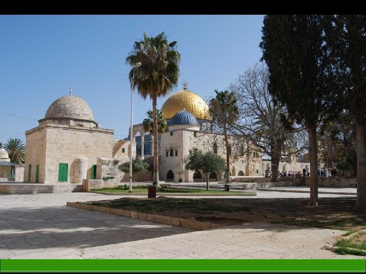 L’église du Saint Sépulcre à Jérusalem Il s’agit en effet du sanctuaire édifié autour du lieu supposé de la crucifixion ainsi que de l’endroit où le Christ aurait été enterré et où il aurait ressuscité Mosquée Al-Aqsa de Jérusalem sur l’Esplanade des Mosquées Pour les musulmans, cet endroit serait le point d'où Mahomet est monté au paradis, emporté par son cheval Bouraq. Le Mur des lamentations La terre de Moïse, David et Salomon. La tradition biblique affirme que la Palestine est la terre donnée par Dieu au « peuple élu » , dirigé par Moïse qui a sorti d’ Égypte le peuple hébreu où il avait été réduit en esclavage.