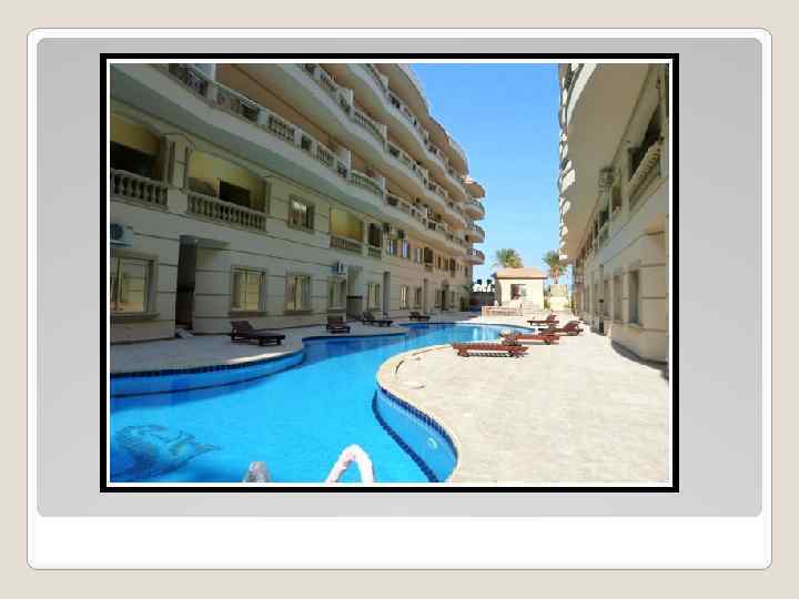 • All apartments and the compound are very nicely finished to fit european standards • Excellent open location near the sea • 15 minutes from the airport of hurghada • 15 minutes from el gouna • Large landscaped gardens and children playing area in front of the resort • Large swimming pool with children's pool, sun beds and pool bar • Fully equipped gymnasium • 10 year builders guarantee