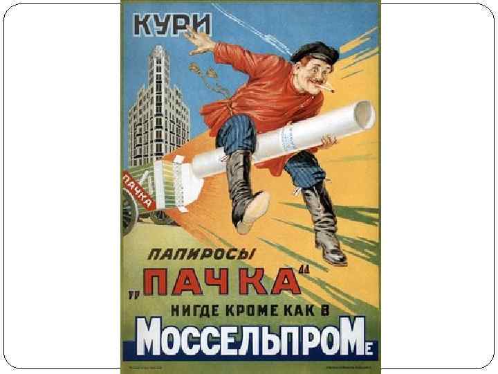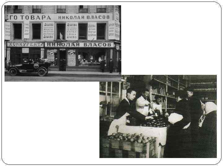 НЭПман Реклама 20 -х годов. НЭП привел к появлению новой социальной группы нэпманов. Они были лишены избирательных прав, не могли вступать в профсоюзы, но в то же время обладали высокими доходами. Нэпманы зная непрочность своего положения стремились вкладывать деньги не в промышленность, а в торговлю.
