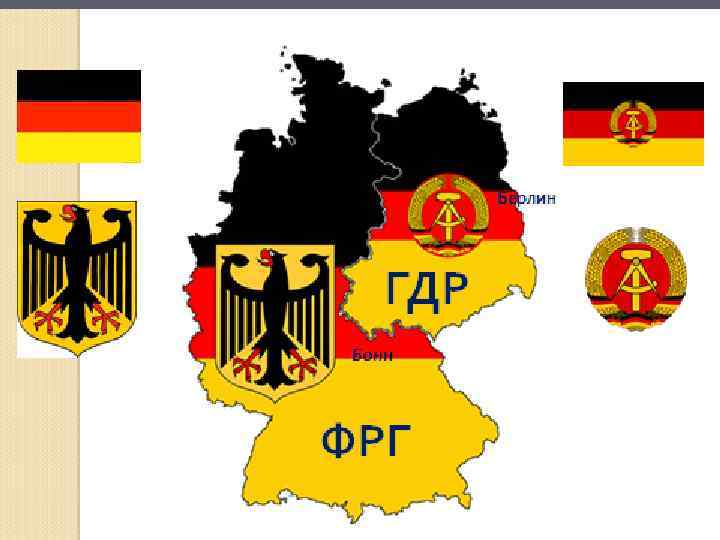 Сегодня на уроке: ► Познакомимся с послевоенным положением Германии; ► Выясним, почему произошло разделение Германии на ФРГ и ГДР; ► Проследим их пути развития; ► Выясним, что подтолкнуло ФРГ и ГДР объединиться в одно государство