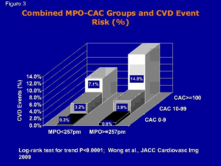 Figure 3 Combined MPO-CAC Groups and CVD Event Risk (%) Log-rank test for trend P<0. 0001; Wong et al. , JACC Cardiovasc Img 2009