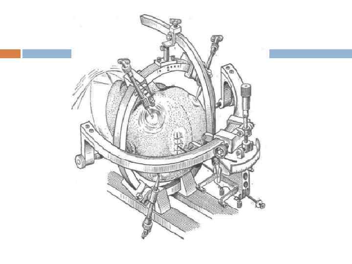 Разработано большое количество моделей стереотаксических приборов для нейрохирургических операций. Выделяют 3 типа: 1)Одни приборы большого размера и сложной конструкции фиксируются на черепе в строго определенном положении по средством специальных упоров, ограничителей и держателей. 2)Другие приборы облегченной конструкции и небольшого размера жестко фиксируются в трепанационном отверстии винтами. 3)К третьему типу относятся приборы, предназначенные для определенной операции (например, на гипофизе). Электроды и иглы должны продвигаться миллиметр за миллиметром во всех трех плоскостях. Необходимо обеспечить возможность рентгенологического исследования во время операции.