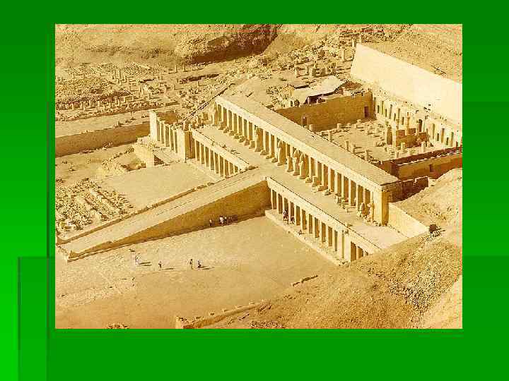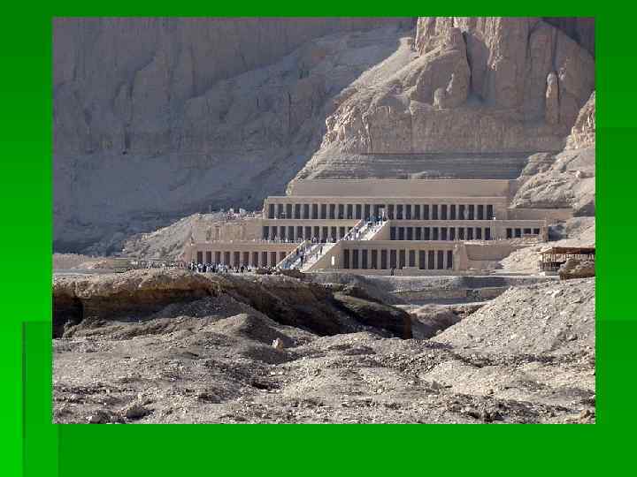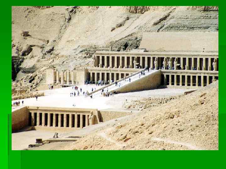 Хатшепсут § Фараон-строитель § «Красное святилище» , VIII пилон в храме Амона и святилище Амона. Камутефа в Карнаке § Заупокойный храм в Дейр-эль. Бахри (зодчий Сенмут) «Джесеру» ( «Священнейший из священных» ) (на след. слайде) § Храмы в Мемфисе, Абидосе, Гермополе, Бухене (Нубия), на Элефантине и в других городах Египта
