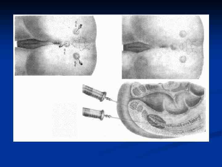 n n Перианальная новокаиновая блокада показана при остром воспалении геморроидальных узлов и выраженных болях. Положение больного на спине с поднятыми и согнутыми в коленных суставах ногами. Удобнее создать это положение на гинекологическом кресле. После тщательной обработки кожи промежности антисептиками производят вхол иглой, отступя от края заднепроходного отверстия 1, 5 — 2 см. Инъекцией раствора новокаина создают внутрикожный желвак. Затем через него новыми уколами тонкой иглы продлевают этот желвак циркулярно вокруг заднепроходного отверстия. При правильном выполнении этой манипуляции больной ощущает боль преимущественно только при первом уколе. Из четырех равно удаленных друг от друга точек, начиная с уровня копчика, через этот желвак более длинной иглой вводят в окружающую прямую кишку клетчатку по 20 мл 0, 25% раствора новокаина на глубину 3— 4 см. К раствору новокаина добавляют антибиотики. Гнойные процессы на коже и в подкожной жировой клетчатке промежности являются противопоказанием для такой блокады. Возможное осложнение — инфицирование парарек-тальной клетчатки, избежать которого можно только тщательным соблюдением правил асептики и продвижением в глубь иглы с учетом расположения прямой кишки. При уколе из задней точки (на 6 часах по циферблату) иглу следует продвигать, наклоняя конец ее кзади, к копчику.