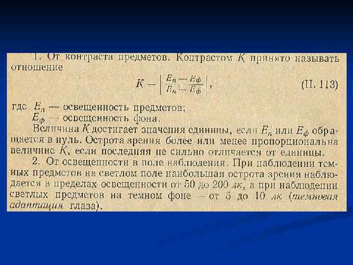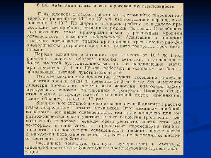 Кривые адаптации для различных рецепторов (порог чувствительности в темноте в зав. от длины волны ) Кривая темновой адаптации порог чувствительности (восстановление чувствительности во времени после яркой засветки ) d. B Относительная эффективность рецепторов, % Палочковая адаптация Колбочковая адаптация