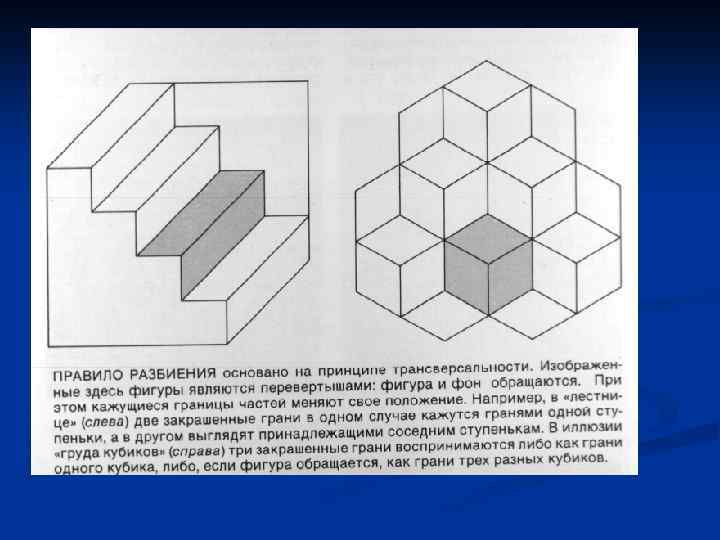 Различение признаков объекта n n n Признаки расстояния и глубины Роль светотени в восприятии формы, перцептивной группировке и движении Использование законов упорядоченности мира в процессе интерпретации зрительных образов. (Твёрдость предметов, планарность, др. )