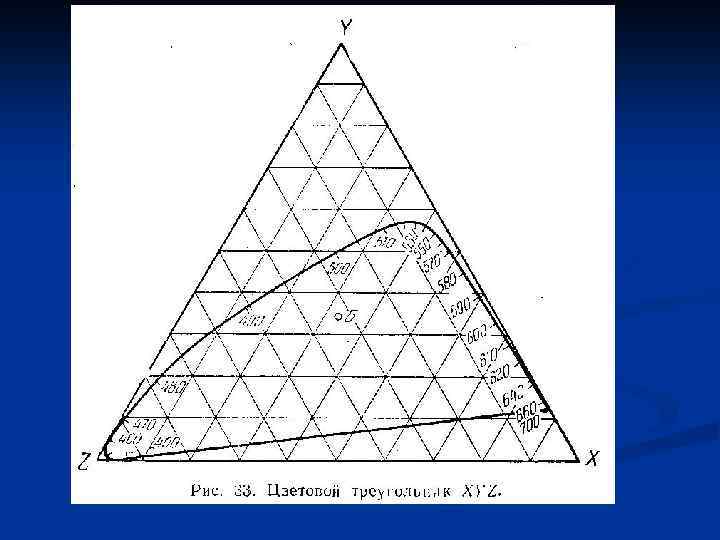 ЦКС МКО XYZ Кривые сложения x, y, z. y соответствует кривой видности глаза и является координатой яркости x содержит информацию о цвете объекта, т. к. координата Z получается из уравнения X+Y+Z=1