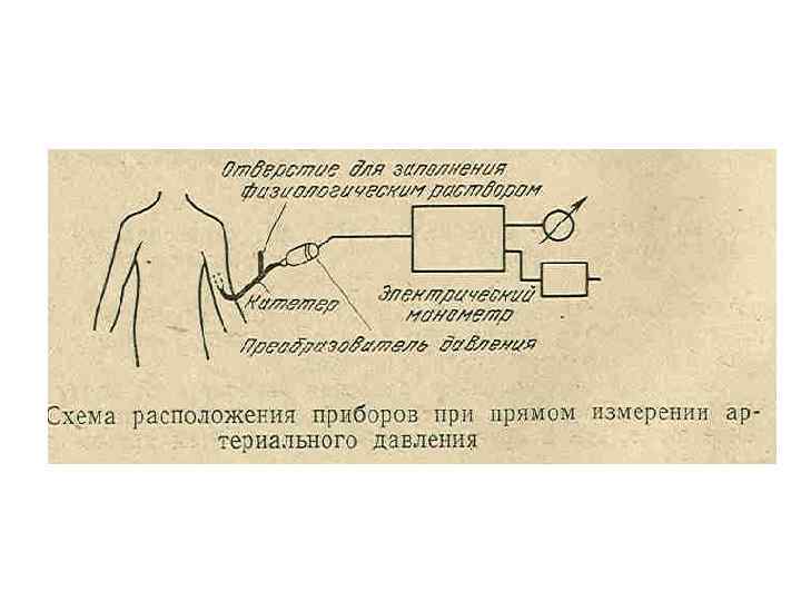 Прямое измерения артериального давления • Применяют в ходе операций, при катетеризации сердца, в палатах интенсивной терапии. • Конструкция – катетер диаметром несколько мм или канюля. • Материал – резина, тефлон, полиэтилен. • Длина катетера зависит от места введения. (Вена, артерия, полость сердца). Минимальный диаметр 0, 9 -1 мм. • Катетер заполняется физиологическим раствором без пузырьков. Этот столбик жидкости передаёт давление на микрофон, преобразующий давление в электрический сигнал. Колебания давления деформируют и смещают мембрану. Движения мембраны регистрируются , например, емкостным датчиком (C=S /4 d) или полупроводниковыми элементами. (R(P)). • Частотный диапазон 50 – 80 – 100 гц.