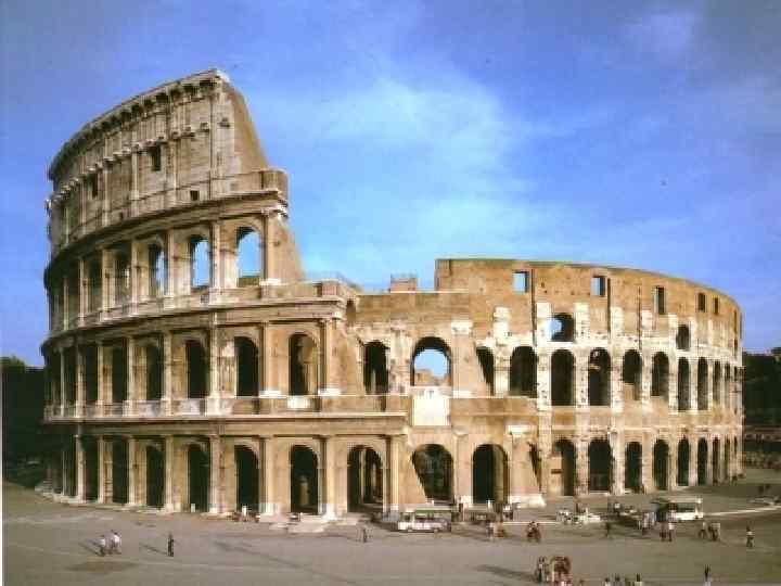 • (от латинского colosseus - громадный) • самый величественный и грандиозный памятник античного Рима. (75 -80 н. э. ). • Считается, что свое название Колизей получил от гигантской статуи императора Нерона. • Колизей служил для гладиаторских боев и других зрелищ и вмещал около 50 тысяч зрителей. Колизей. Амфитеатр Флавиев