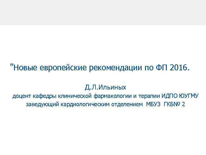 "Новые европейские рекомендации по ФП 2016. Д. Л. Ильиных доцент кафедры клинической фармакологии и терапии ИДПО ЮУГМУ заведующий кардиологическим отделением МБУЗ ГКБ№ 2