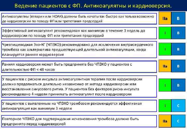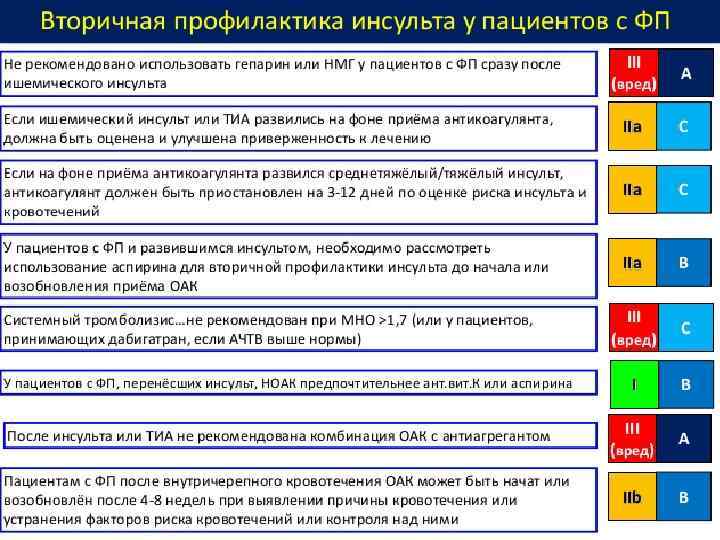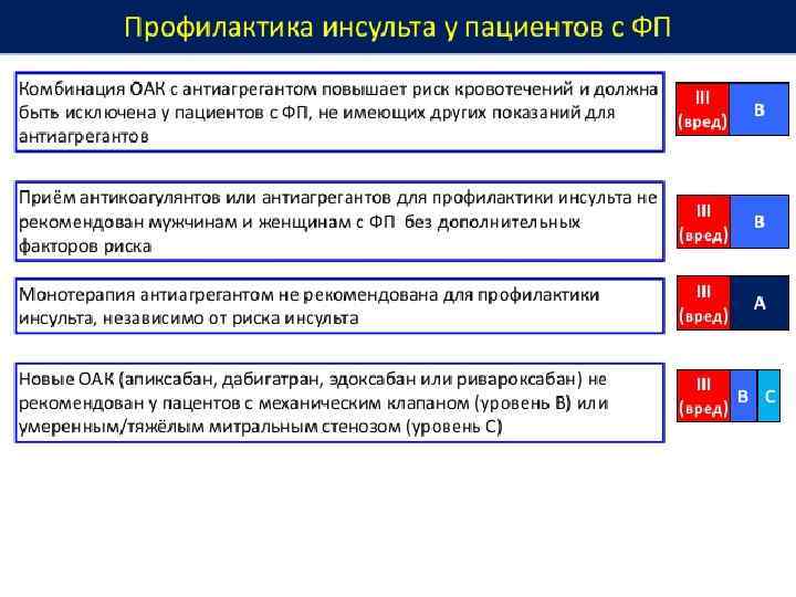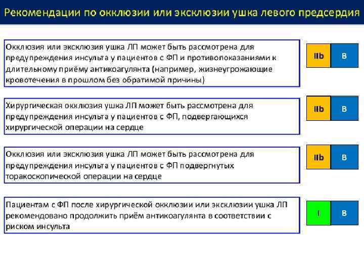 Антитромботическая терапия после планового ЧКВ при ФП и необходимости антикоагулянтной терапии Пациент с ФП и показаниями для антикоагулянтной терапии после планового ЧКВ Низкий риск кровотечений Время после ЧКВ В сравнении с риском ОКС или тромбоза стента 0 В сравнении с риском ОКС или тромбоза стента Тройная терапияa (IIa. B) 1 месяц 3 месяца 6 месяцев Высокий риск кровотечений Двойная терапияb (IIa. С) А или К Монотерапия ОАКc (IB) 12 месяцев Пожизненн о Монотерапия ОАКc (IB) ОАК Аспирин 75 -100 мг/день Клопидогрел 75 мг/день ОКС – острый коронарный синдром, ЧКВ – чрескожное коронарное вмешательство; ФП – фибрилляция предсердий, ОАК – пероральные антикоагулянты (включая антагонисты витамина К и новые пероральные антикоагулянты) а двойная терапия ОАК +аспирин или кклопидогрел может быть рассмотрена у отдельных пациентов b ОАК + антиагрегант c Двойная терапия, включая ОАК и аспирин или клопидогрел, может быть рассмотрена у пациентов с высоким риском коронарных событий Kirchhof P, Benussi S, Kotecha D et al. 2016 ESC Guidelines for the management of atrial fibrillation developed in collaboration with EACTS. Eur Heart J. Published online ahead of print. doi: 10. 1093/eurheartj/ehw 210.