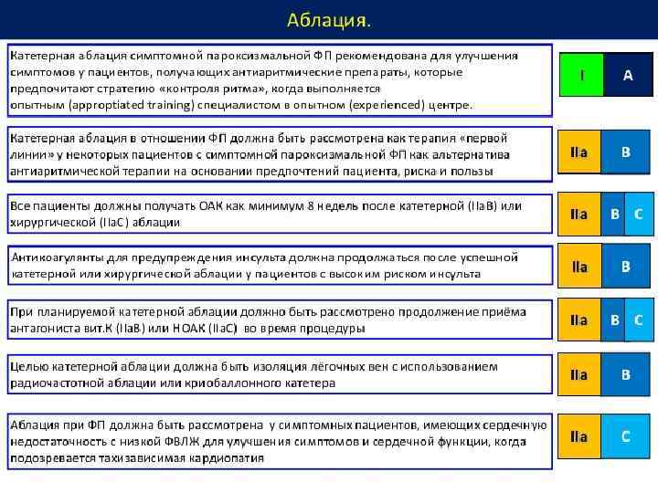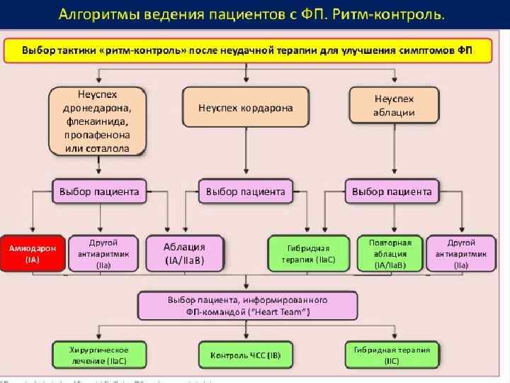 Антитромботическая терапия после ОКС у пациентов с ФП при необходимости антикоагулянтной терапии Пациент с ФП и показаниями для антикоагулянтной терапии после ОКС Низкий риск кровотечений Время после ОКС В сравнении с риском ОКС или тромбоза стента 0 1 месяц 3 месяца Тройная терапияa (IIa. B) Двойная терапияb (IIa. С) Пожизненн о В сравнении с риском ОКС или тромбоза стента Тройная терапияa (IIa. B) 6 месяцев 12 месяцев Высокий риск кровотечений А или К Монотерапия ОАКc (IB) ОАК Аспирин 75 -100 мг/день Монотерапия ОАКc (IB) Клопидогрел 75 мг/день ОКС – острый коронарный синдром, ФП – фибрилляция предсердий, ОАК – пероральные антикоагулянты (включая антагонисты витамина К и новые пероральные антикоагулянты) а Двойная терапия ОАК +аспирин или клопидогрел может быть рассмотрена у отдельных пациентов, особенно тех, у кого не было стентирования или по прошествии более длительного времени с момента события b ОАК + антиагрегант c Двойная терапия, включая ОАК и и аспирин или клопидогрел, может быть рассмотрена у пациентов с высоким риском коронарных событий Kirchhof P, Benussi S, Kotecha D et al. 2016 ESC Guidelines for the management of atrial fibrillation developed in collaboration with EACTS. Eur Heart J. Published online ahead of print. doi: 10. 1093/eurheartj/ehw 210.