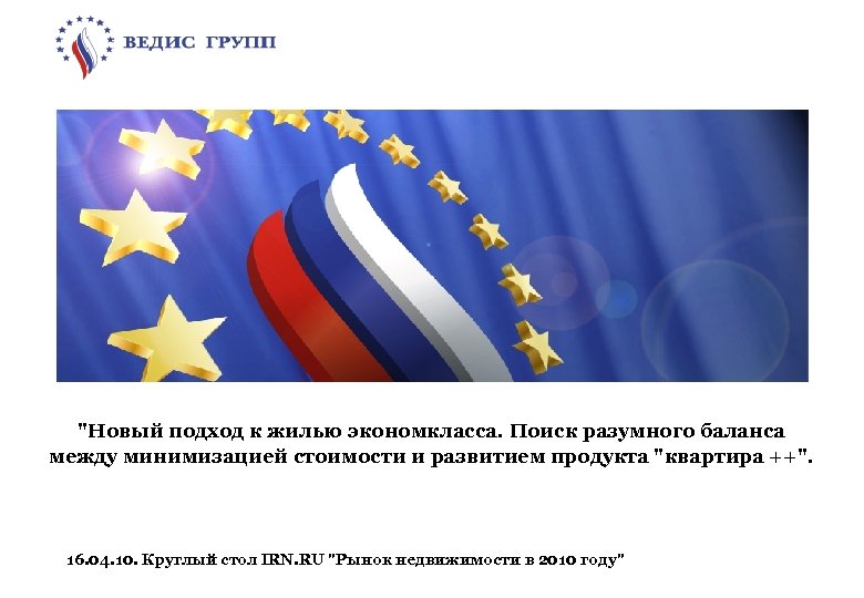 "Новый подход к жилью экономкласса. Поиск разумного баланса между минимизацией стоимости и развитием продукта "квартира ++". 16. 04. 10. Круглый стол IRN. RU "Рынок недвижимости в 2010 году"