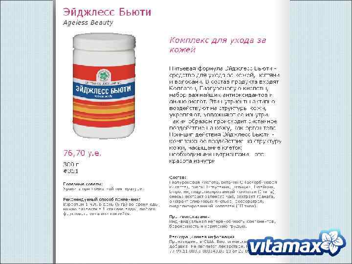 НОВЫЙ ПРОДУКТ КОМПАНИИ ВИТАМАКС ЭЙДЖЛЕСС БЬЮТИ