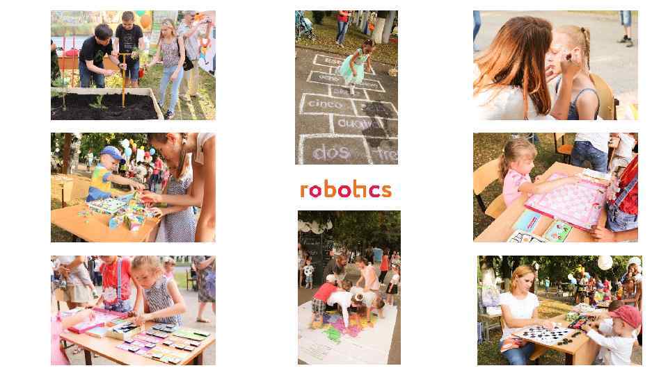 • Мероприятия: • Торжественное закрытие курсов – детский праздник: презентация проектов по робототехники, творческие площадки, фотозона, аквагрим, лотерея и розыгрыш призов, гигантские настольные игры, Твистер на немецком, Испанская арифметика, Страноведение на английском и многое другое. Количество гостей – более 200 человек.