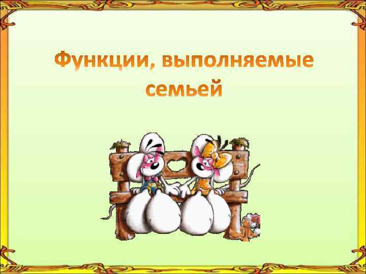 • • Бытовая; Сексуально – эротическая; Репродуктивная; Воспитательная.