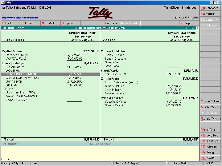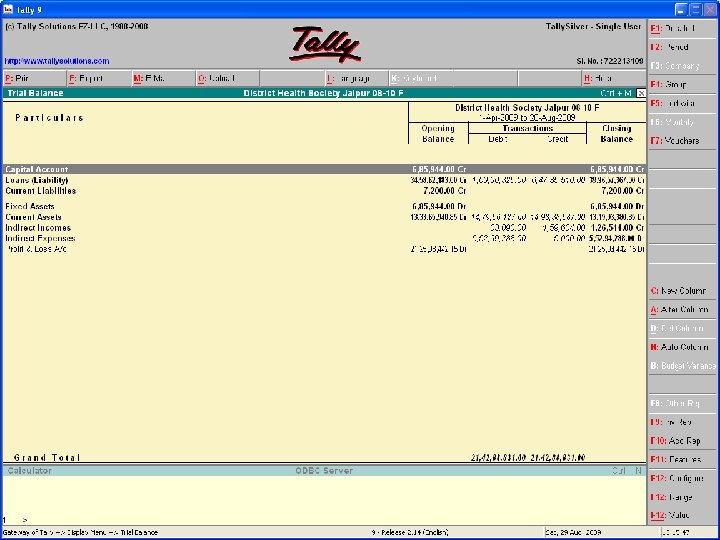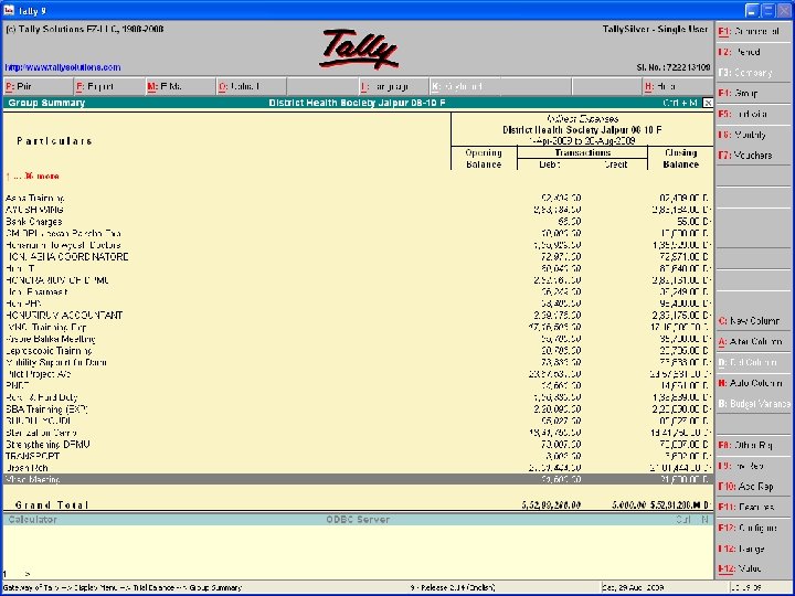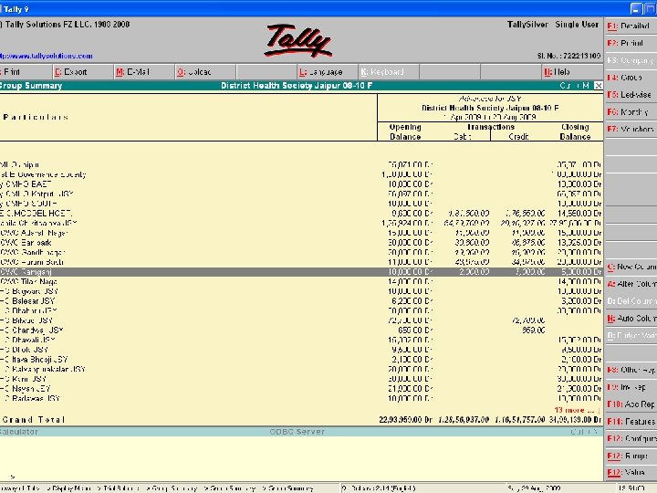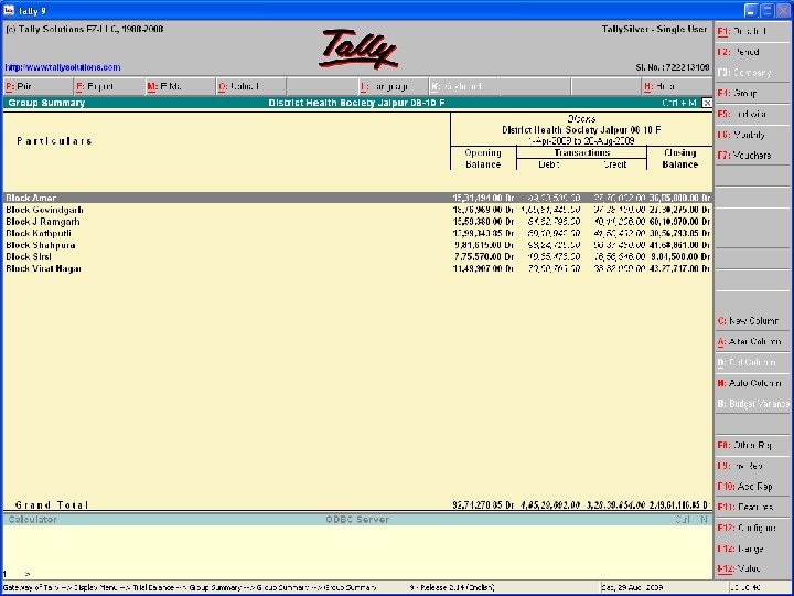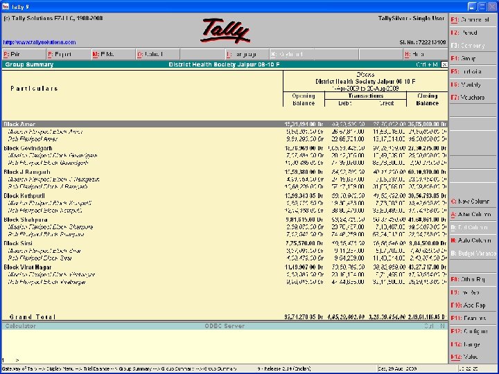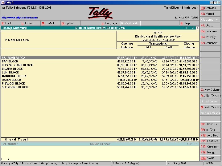 NRHM-Rajasthan State Health Society Current status (Up to 31 st July 2009) of Bank Balance & Advances of Rajasthan State Health Societies & District Health Societies. Operating of tally system in Rajasthan State Health Society, 34 District Health Societies and 237 Blocks