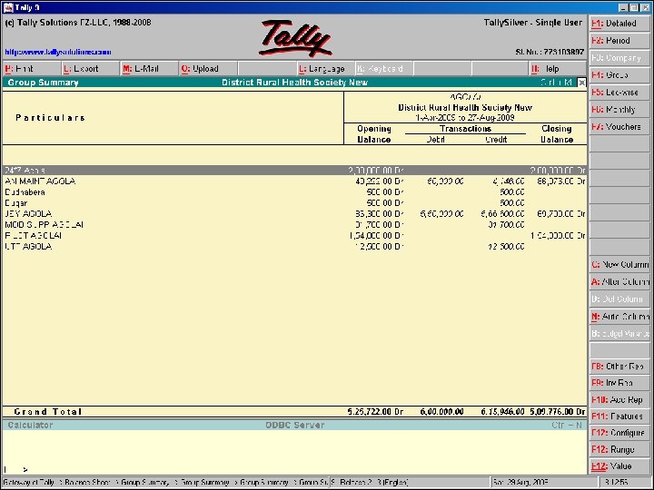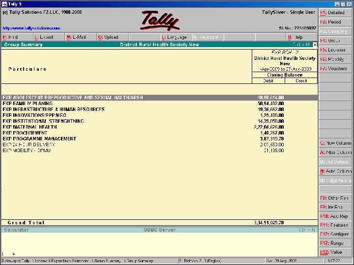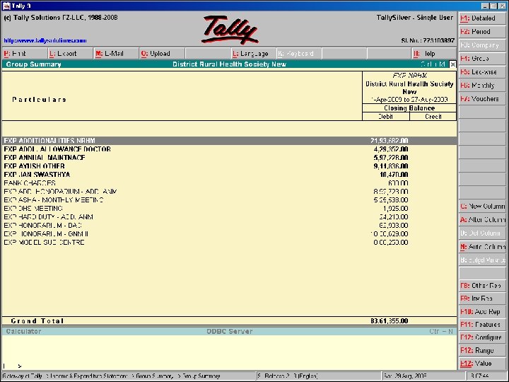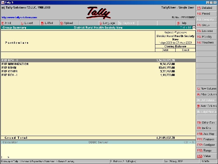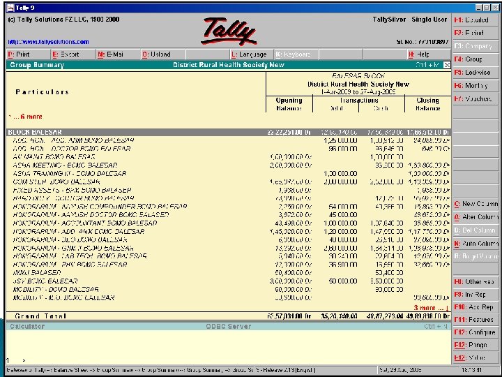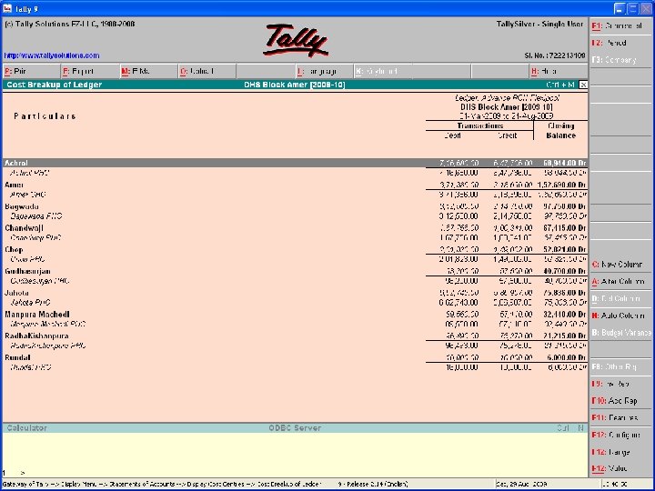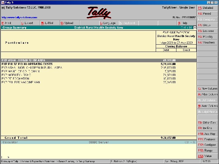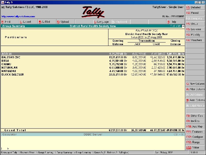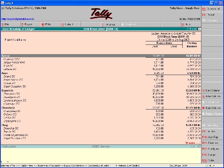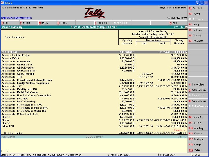 Category wise & Pool wise Grouping of advances Tally offers category wise and pool wise grouping of advances. This helps us to generate reports as : Ø Ø How much advances are lying to CHCs/ PHCs/ sub centers/ blocks under RCH Flexi pool or other pools How much advances are outstanding under Additionalities under NRHM Total Advances of all pools at any point of time These information may be generated at a click of button at any time.