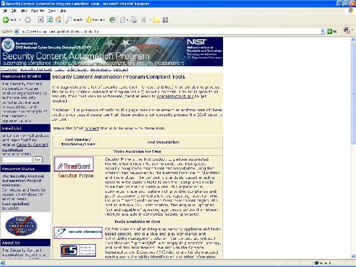 On The Web at: • Security Content Automation Program: – nvd. nist. gov/scap. cfm • NIST Checklist Website: – checklists. nist. gov • National Vulnerability Database: – nvd. nist. gov