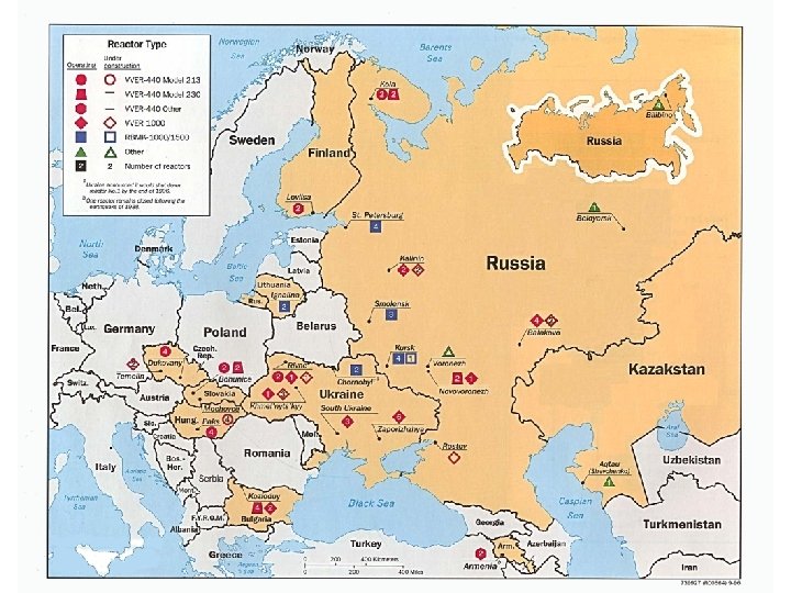 Nuclear power plants in Russia • 11 reactors are like Chrnobil—been given life extensions • “inherently unsafe design”—can not be improved by upgrading and modernization • Their existence violate Russian laws because have not undergone environmental assessment • 6 reactors are under construction (Volgodon, Kalinin, Beloyarsk, etc)