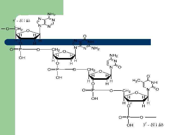 Нуклеиновые кислоты l l Биополимеры, состоящие из нуклеотидов. Тип связи между нуклеотидами – 3’, 5’фосфодиэфирная связь