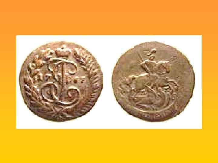 Денежная реформа Петра I 1704 год p p p Монета обрела вид правильного круга Введена десятичная денежная система, т. е в 1 рубле 100 копеек. Выпущены деньги разного достоинства от рубля до копейки.