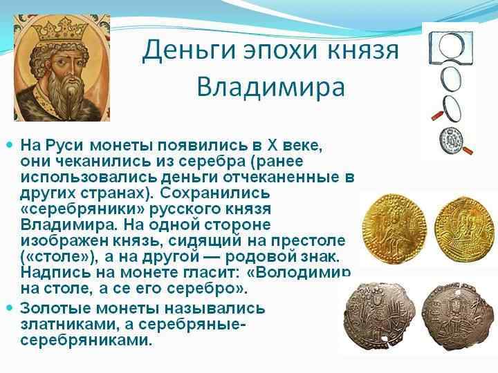 p Деньгами служили шкуры животных – песца, белки, соболя, куницы, которые назывались куны.