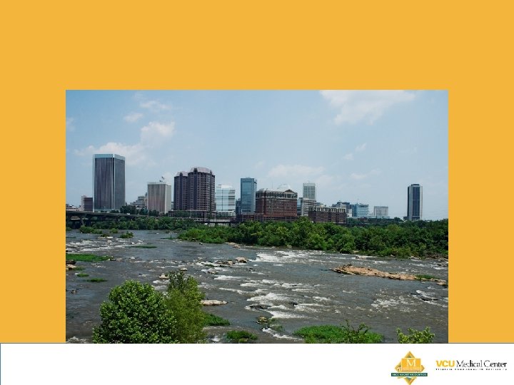 Greetings from Richmond, Virginia and Virginia Commonwealth University • • Richmond is the capital of the Commonwealth of Virginia and the center of a metropolitan statistical area with more than 1. 2 million residents. • Virginia Commonwealth University is a public, urban research university, supported by the Commonwealth of Virginia to serve the people of the Commonwealth and the nation. • With more than $225 million in annual research funding, VCU is ranked by the Carnegie Foundation as one of the nation's top research universities. . VCU is composed of two campuses: the 52. 4 -acre Medical College of Virginia (MCV) Campus, which includes VCU Medical Center (VCUMC), located near the financial, governmental and retail district in downtown Richmond; and the 88. 2 -acre Monroe Park Campus situated two miles to the west in the historic Fan District. • The University takes its founding date of 1838 from the year in which the Medical College of Virginia (MCV) was created as the medical department of Hampden-Sydney College. MCV became independent from Hampden-Sydney in 1854 and state-affiliated in 1860.
