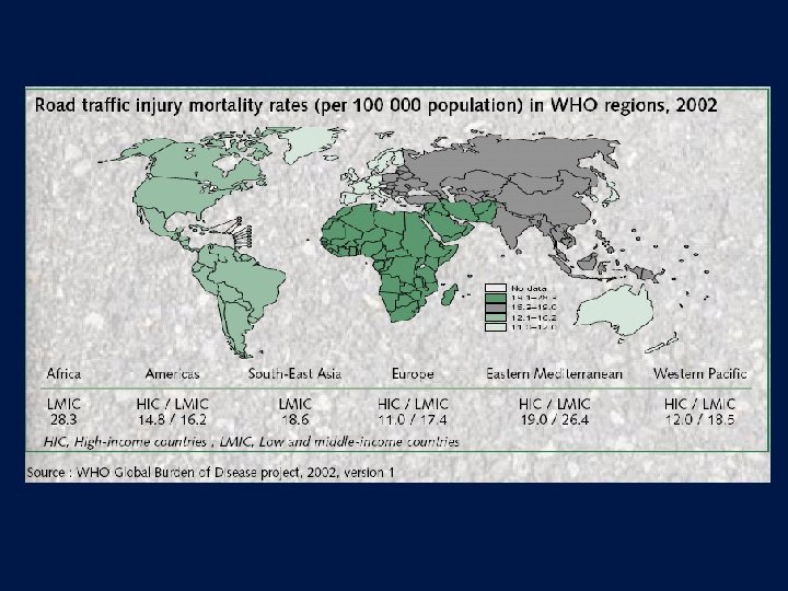 Road Traffic Accidents • Road traffic accidents rank as the 11 th leading cause of death and account for 2. 1% of all deaths globally – kill 1. 2 million people a year or an average – injure or disable between 20 million and 50 million people a year • 90% of road traffic deaths occur in low-income and middle-income countries