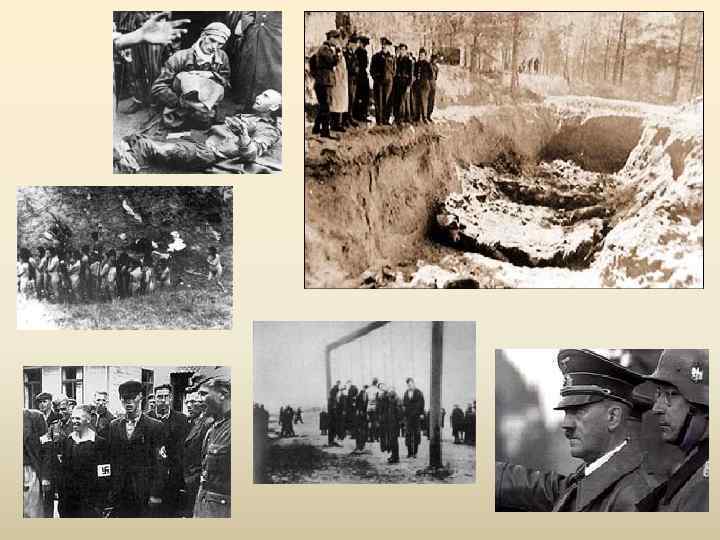 Обвинения • Военные преступления: – Убийства и жестокое обращение с гражданским населением на оккупированных территориях и в открытом море. – Увод гражданского населения оккупированных территорий в рабство и для других целей. – Убийства и жестокое обращение с военнопленными и военнослужащими стран, с которыми Германия находилась в состоянии войны, а так же с лицами, находившимися в плавании в открытом море. – Бесцельные разрушения больших и малых городов и деревень, опустошения, не оправданные военной необходимостью. – Германизация оккупированных территорий.