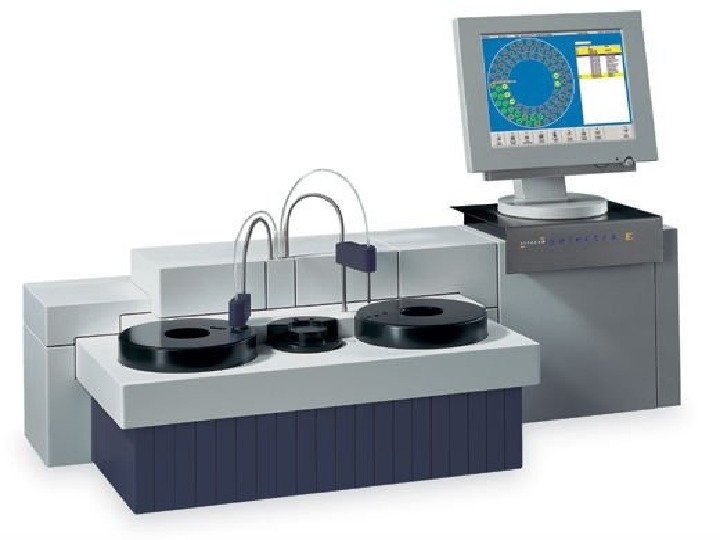 • Selectra 2 • Зерттеу түрлері: • *клиникалық химиялар: ферменты, субстраты, электролиты • *арнайы белоктарды анықтау • *дәрілік мониторинг • *электролиттерді анықтау Сағатына 180 тест жүргізе алады. Әртүрлі реагенттер қолданылады. Зерттеу материальдары: сары су, плазма, зәр, жұлын – ми сұйықтығы. Моно, би- трехреагентті жүйені ұстай алады.