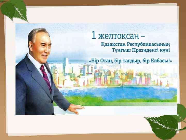 • Елбасы Нұрсұлтан Назарбаевтың көреген саясатының арқасында тәуелсіз Қазақ елі қалыптасып, тарихымыз түгенделіп, тіліміз, дініміз және діліміз қайта оралып, мемлекетіміздің ұлттық рәміздері қабылданды. Қазақстанның шынайы егемендігін қамтамасыз еткен маңызды мемлекеттік актілерге қол қойылды.