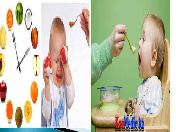 Өмірінің бірінші жылында балаларды тамақтандырудың 3 нұсқасы болуы мүмкін: табиғи; жасанды; аралас. Табиғи тамақтандыру сәбиді ана сүтімен тамақтандыруды білдіреді, бұл – тамақтандырудың ең жақсы нұсқасы. Жасанды тамақтандыру – бұл баланың тек жасанды сүт қоспаларын ғана қабылдайтын және ана сүтімен тамақтанбайтын тамақтандыру түрі. Аралас тамақтандыруда егер баланың жасына қарай оған қосымша тамақ беруге болмайтын кезде, балаларға ана сүтімен қатар сүт қоспалары да беріледі. Жасанды сүт қоспаларымен қосымша тамақтандыру үстеме тамақтандыру деп аталады. Тамақтандырудың осындай типіне анада сүт жеткіліксіз болса немесе омыраумен тамақтандыру санын қысқарту негіздері болған жағдайда жүгінеді.