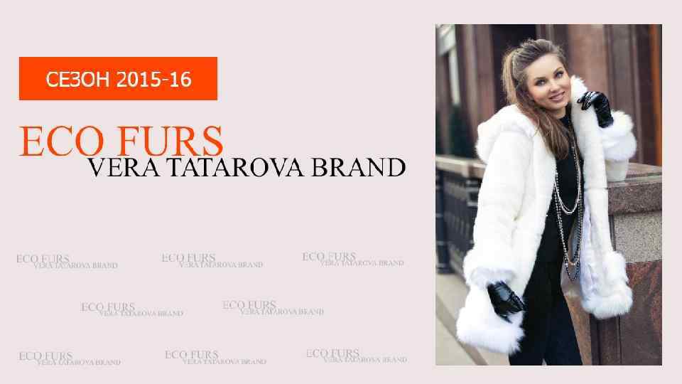 О бренде VERA TATAROVA Известный как ранее VERA YAKIMOVA, переименован с 2015 года. Бренд занимается производством шуб из лучших эксклюзивных эко мехов производства Японии, Италии, Франции. Бренд VERA TATAROVA направлен на продвижение эко стиля в России. Мы стремимся разрабатывать одежду, которая несет в себе красоту, стиль и отражение личности покупателя. Мы хотим представить России, привыкшей к мехам в холодную зиму, Что можно быть невероятно разной и привлекательной в одежде, которая не несет в себе убийства и жестокость; Одежду, которая сможет стать самой настоящей альтернативой натуральным шубам, а не пуховикам!