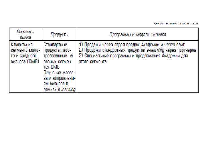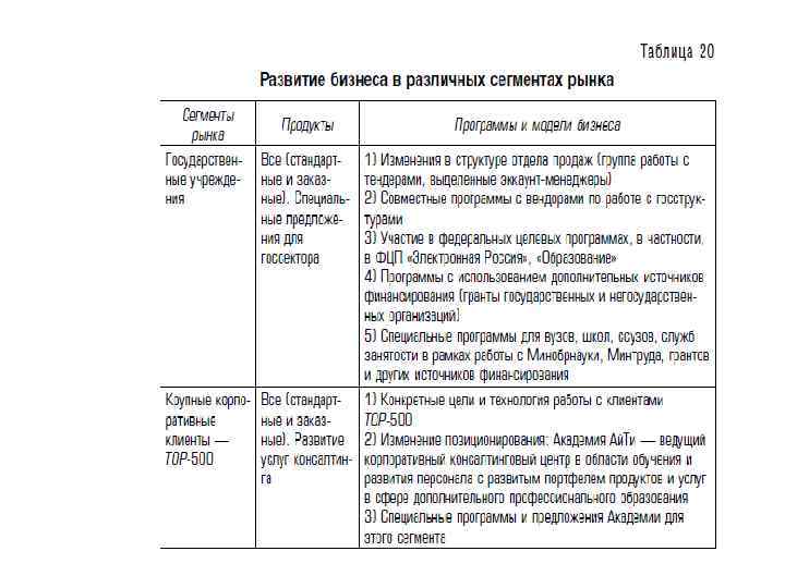с точки зрения потребителей: • рынок государственных учреждений; • рынок крупных корпоративных клиентов; • рынок малого и среднего бизнеса; • рынок индивидуальных потребителей — не является приоритетным для Академии Ай. Ти.
