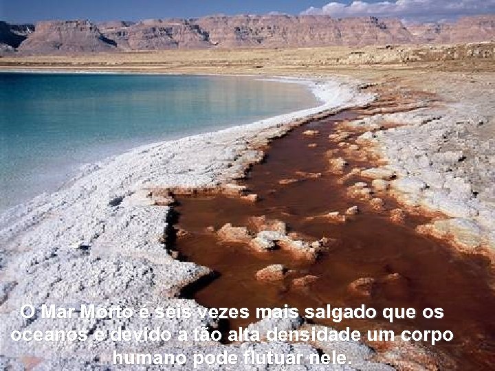 O Mar Morto é seis vezes mais salgado que os oceanos e devido a tão alta densidade um corpo humano pode flutuar nele.