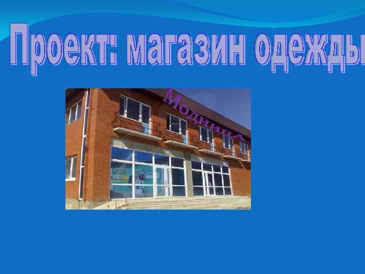 Разработка наименования Немаловажным делом является разработка наименования. Например , наш магазин называется « МОДНИЦА»