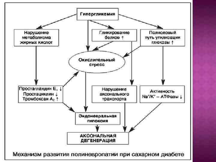 Течени Симметричные е Асимметричные Острые Транзиторная гипергликемическая полиневропатия, острая сенсорная полиневропатия Краниальные невропатии, изолированная периферическая невропатия, радикулоплексопатия Хронич еские Дистальная сенсомоторная полиневропатия, вегетативная полиневропатия Пояснично-крестцовая радикулоплексопатия, множественная мононевропатия, туннельные невропатии