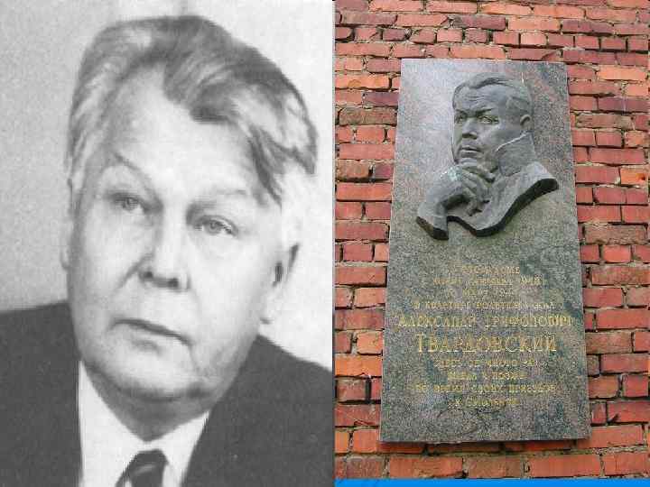 Алекса ндр Три фонович Твардо вский (8 (21) июня 1910), хутор Загорье, Смоленская губерния, Российская империя — 18 декабря 1971, Пахра, Московская область, СССР) — советский писатель и поэт Ø Главный редактор журнала «Новый мир» (1950— 1954; 1958— 1970). Лауреат трёх Сталинских (1941, 1946, 1947), Ленинской (1961) и Государственной премии СССР (1971). Член ВКП(б) с 1940 года. Ø О Родине: «Земля эта — десять с небольшим десятин — вся в мелких болотцах и вся заросшая лозняком, ельником, берёзкой, была во всех смыслах незавидна. Но для отца, который был единственным сыном безземельного солдата и многолетним тяжким трудом кузнеца заработал сумму, необходимую для первого взноса в банк, земля эта была дорога до святости. Нам, детям, он с самого малого возраста внушал любовь и уважение к этой кислой, скупой, но нашей земле — нашему «имению» , как в шутку и не в шутку называл он свой хутор» . Ø Стихи Александр начал сочинять рано, ещё будучи неграмотным, и не будучи в состоянии их записать. Первое стихотворение было гневным обличением мальчишек, разорителей птичьих гнёзд. Ø В 14 лет Твардовский стал писать маленькие заметки в смоленские газеты, а затем, собрав несколько стихотворений, принёс их Михаилу Исаковскому, работавшему в редакции газеты «Рабочий путь» . Исаковский встретил поэта приветливо, став другом и наставником молодого Твардовского. В 1931 была опубликована его первая поэма «Путь к социализму» . Ø