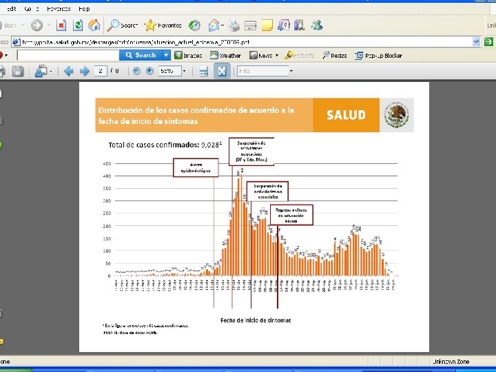 Proportion of total cases, consultations, hospitalisations or deaths One possible European scenario — summer 2009 Initiation 25% Acceleration Peak Declining 20% 15% 10% 5% 0% Apr May Jun Jul Aug Sep Oct Nov Dec Jan Feb Mar Apr Month In reality, the initiation phase can be prolonged, especially in the summer months. What cannot be determined is when acceleration takes place. Animated slide: Press key