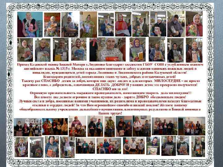 БЛАГОДАРИМ O Учащихся МБОУ СОШ с углубленным знанием английского языка № 1315 г. Москва O Родителей O Преподавателей O Вы стольким людям доставили радость, СПАСИБО вам!!!!