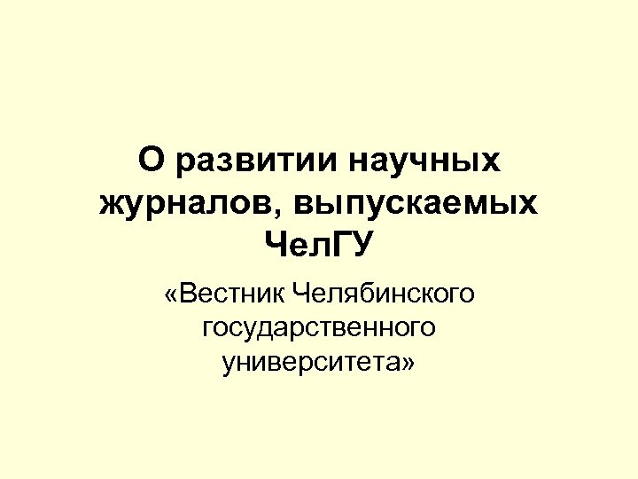О развитии научных журналов, выпускаемых Чел. ГУ «Вестник Челябинского государственного университета»