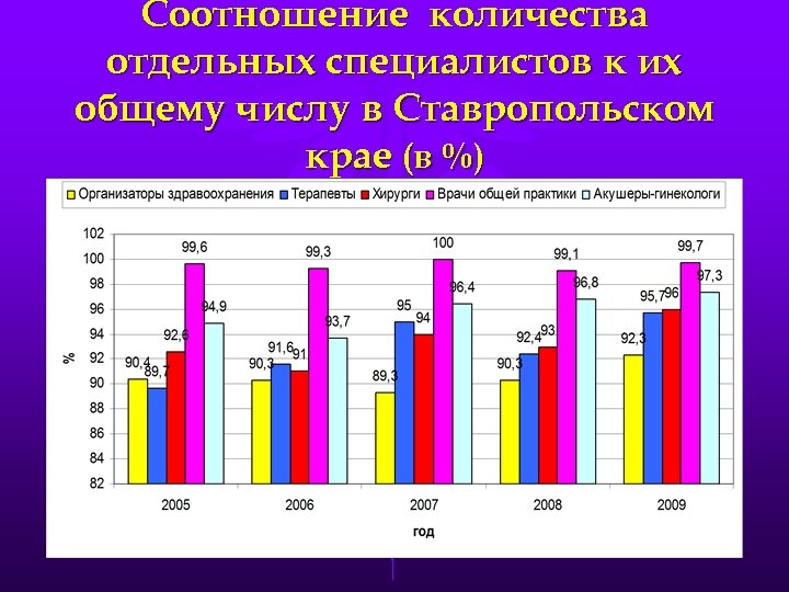 Соотношение количества отдельных специалистов к их общему числу в Ставропольском крае (в %)