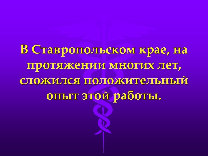 В Ставропольском крае, на протяжении многих лет, сложился положительный опыт этой работы.