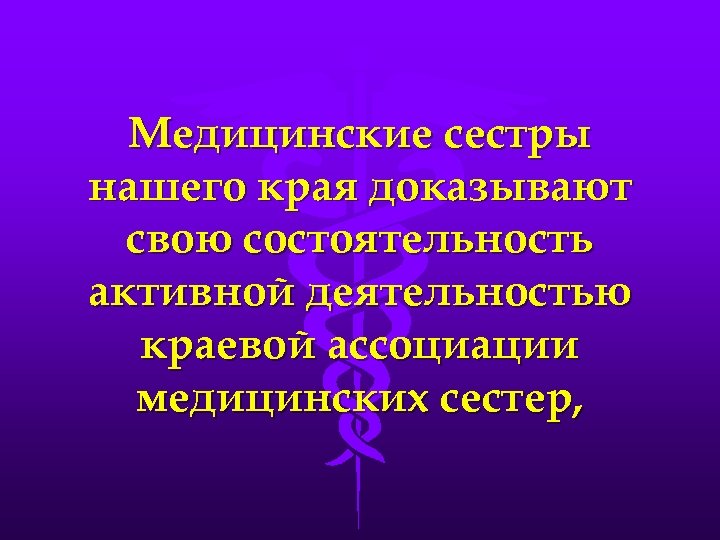 Медицинские сестры нашего края доказывают свою состоятельность активной деятельностью краевой ассоциации медицинских сестер,