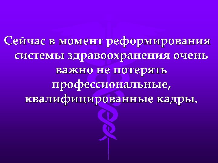 Сейчас в момент реформирования системы здравоохранения очень важно не потерять профессиональные, квалифицированные кадры.