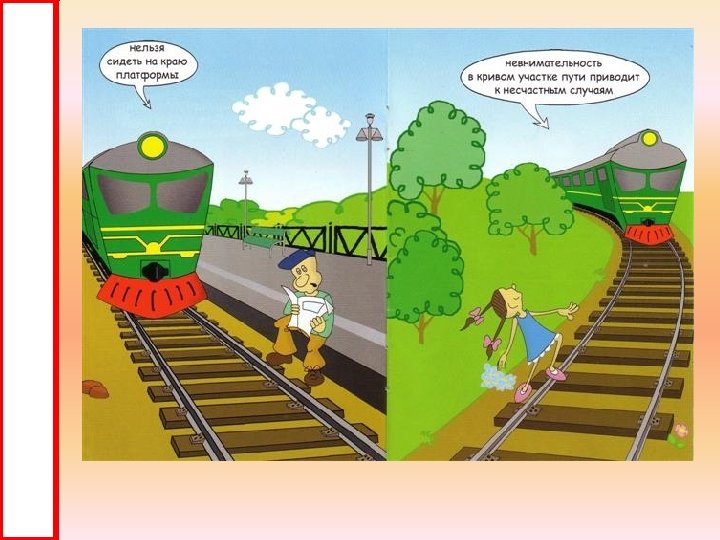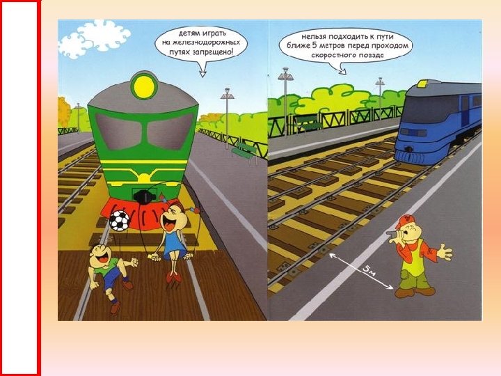 На железной дороге два братца Захотели друг с другом подраться: Поскорее с железной дороги иди! Всё могло бы закончиться плохо! Не ходите и не играйте на железнодорожных путях!