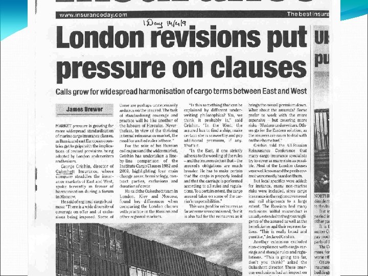 OAKESHOTT INSURANCE NEW INSTITUTE CARGO CLAUSES: CHANGES THAT REFLECT MARKET TRENDS George V Grishin Director, Ph. D, ACI